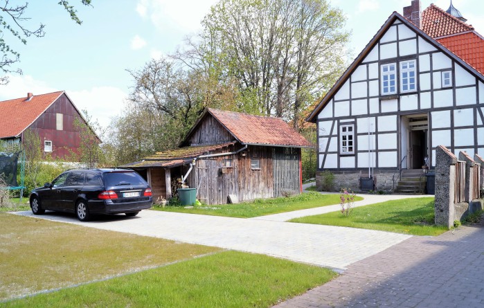 Und seit 2015 haben sie die Möglichkeit den Parplatz zu nutzen, der um das Haus zum Hintereingang führt.