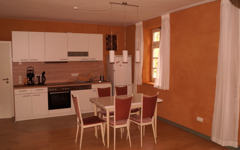 Die Küche ist komplett mit Herd, Ofen und Geschirrspüler eingerichtet. Dazu gibt es eine Microwelle und eine Kaffeemaschine, die Selbstversorgern und Hobbyköchen alle Möglichkeiten läßt.
